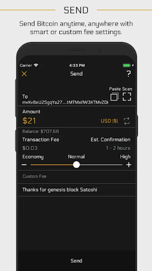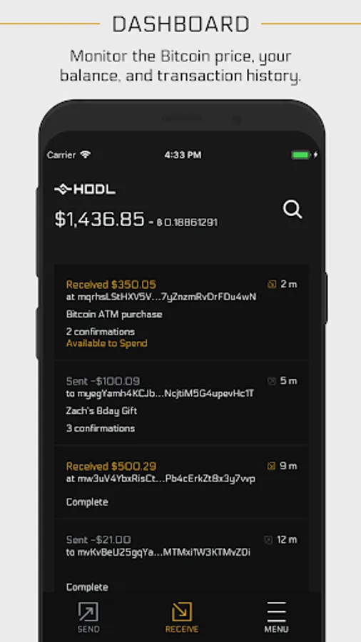 HODL Wallet is a Bitcoin wallet that makes it simple and easy to send, receive, and store bitcoin. It is the best tool for empowering yourself to hold your own funds securely. Your Bitcoin are stored on your device and backed up to a Backup Recovery Key when you create a wallet. This means HODL Wallet can never stop you from accessing or sending your funds.