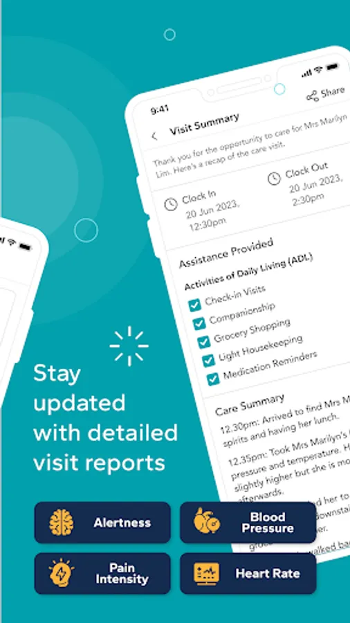 - Detailed Care Reports: Receive a visit summary after every visit so you are updated with the care your loved ones have received