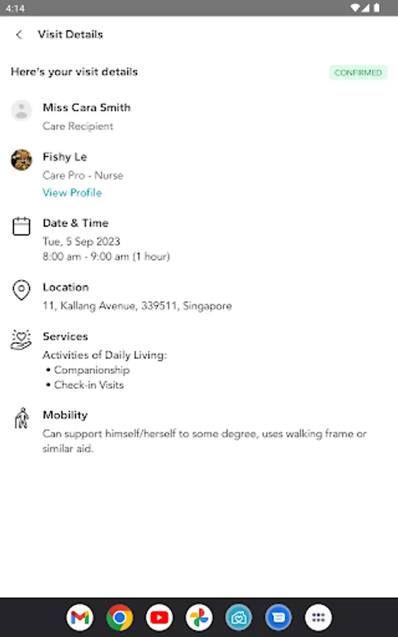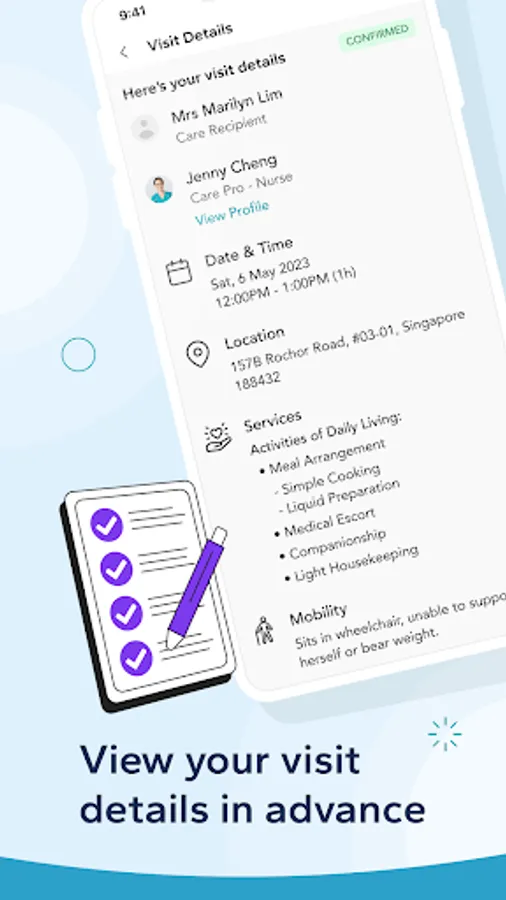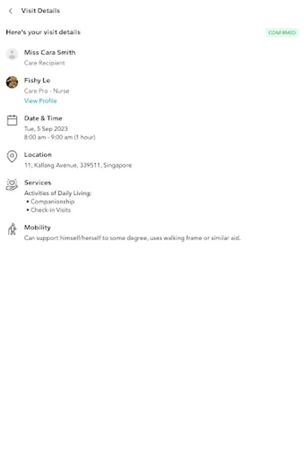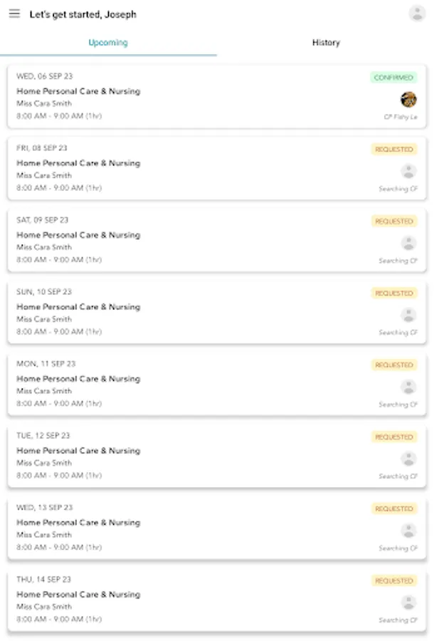 Struggling to keep track of appointments? You'll now have easy access to all upcoming visits, and can view past ones too. You'll also know if a Care Pro has been assigned.