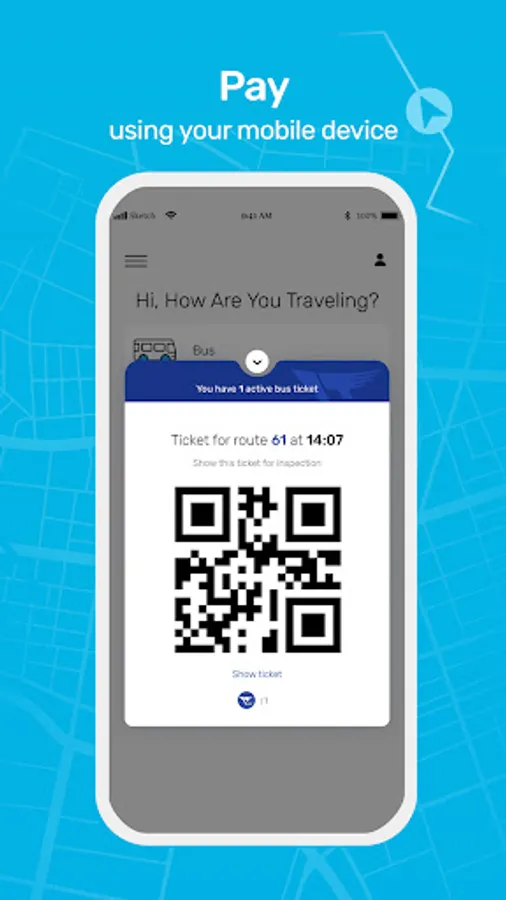 Pay directly from your phone no cash and "smart" cards required, just take your phone to your next ride and scan the QR code on board.