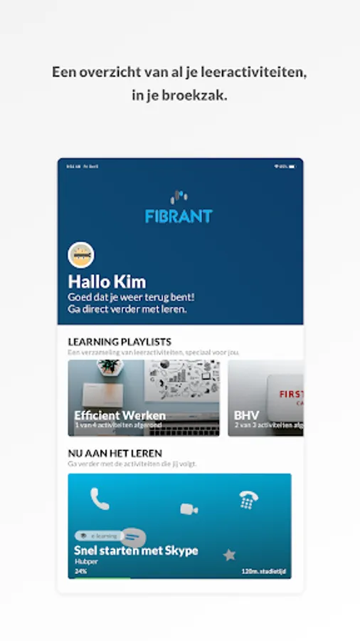 With the Fibrant Academy app you have access to your learning environment always and everywhere. This way you always have insight into your personal learning activities and you can start learning wherever and whenever you want, wherever and whenever you want.