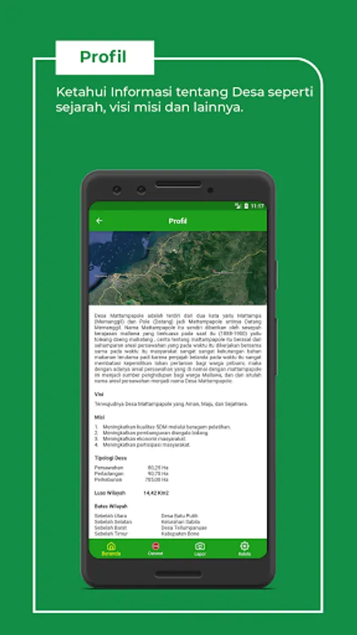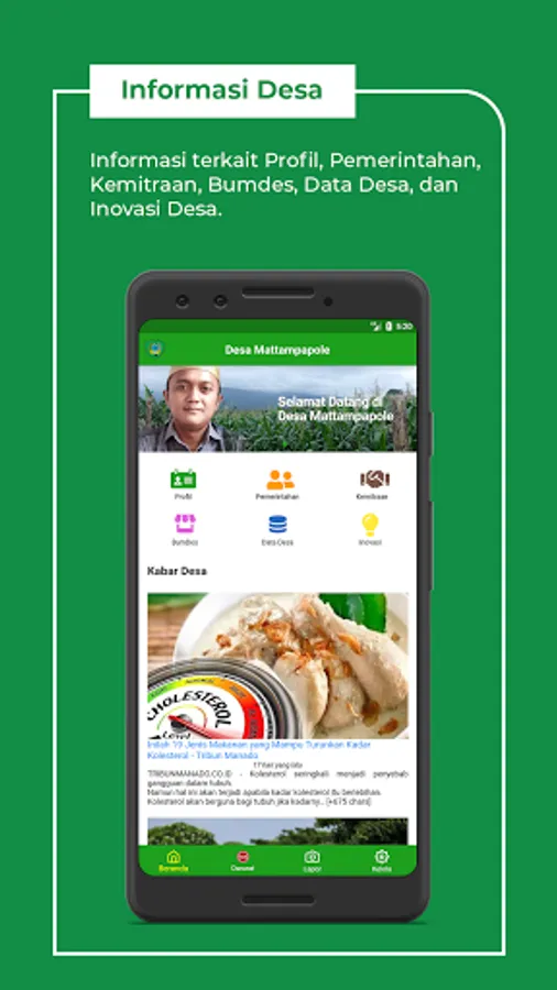 This application aims to provide information related to Profile, Structure, LemMas, Bumdes, and Village Data. In addition, this application is also equipped with features to receive reports and complaints from villagers.