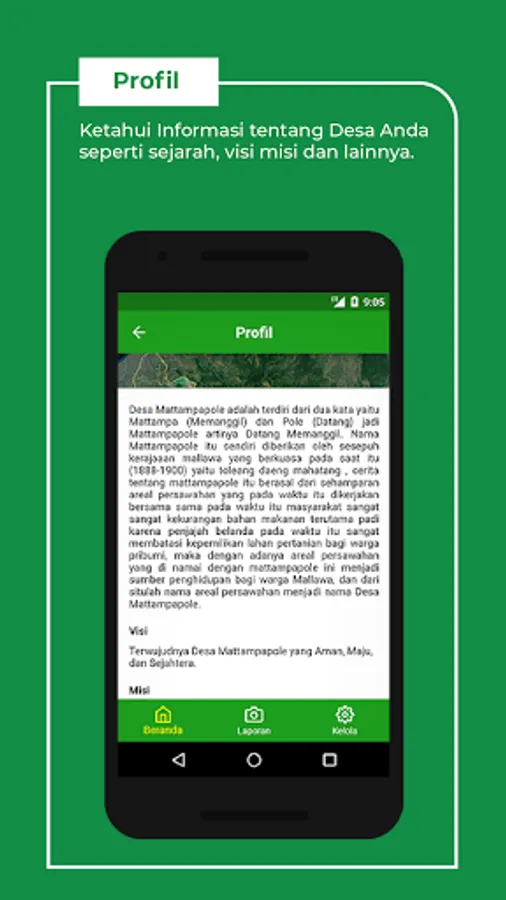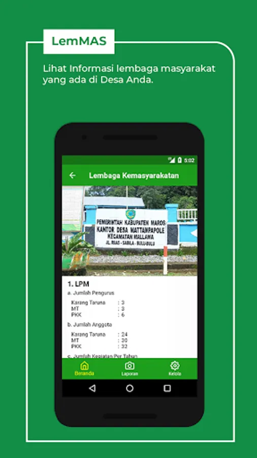 This application aims to provide information related to Profile, Structure, LemMas, Bumdes, and Village Data. In addition, this application is also equipped with e-Services making it easier for people to submit a Certificate without having to come directly to the Village office.