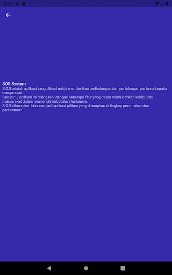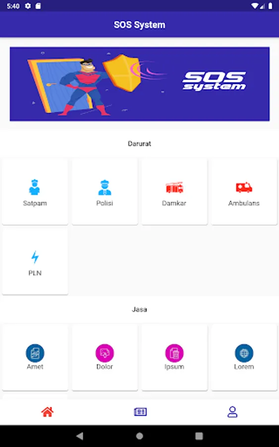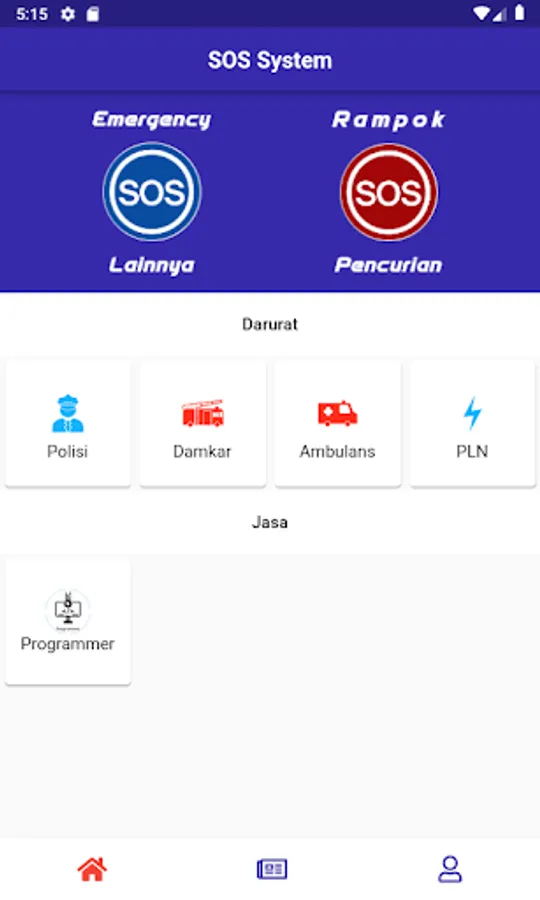 SOS System is an application used for security purposes. SOS System is used by residents in one housing, This application is integrated with Housing Security (Security), Police, Damkar, Ambulance, and PLN. It also can be used to find services to complete certain jobs.