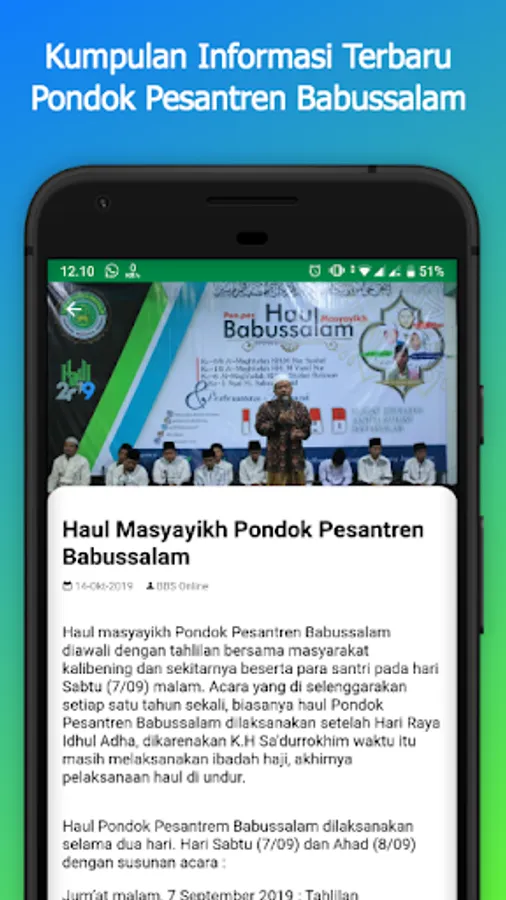 The babussalam.online mobile application provides various updated information related to the Babussalam Islamic Boarding School in Kalibening Jombang, East Java