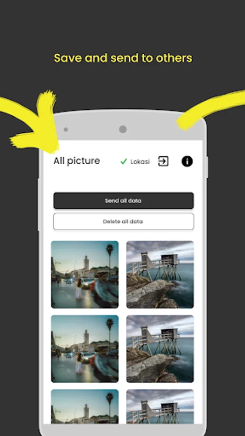 KLIX's location and images are stored in mobile phone storage. The images and location can be sent to any emails. The email recipients will receive spreadsheet table which contains columns of latitude, longitude, textual description and associated image file name. The images will be bundled in a compressed-file.