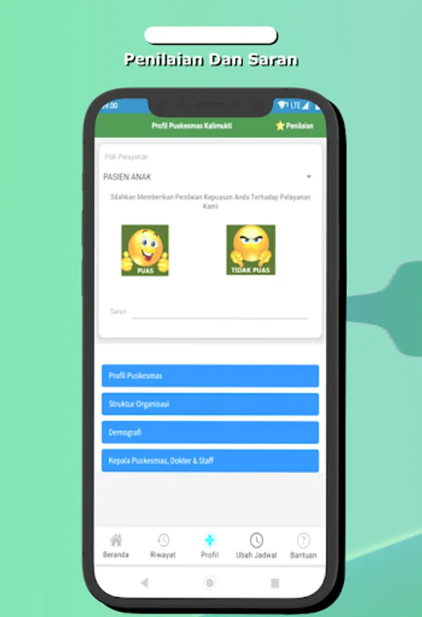 To improve our public services, the UPTD Kalimukti Health Center, Cirebon Regency, West Java and CV.Cakra Wahyu Teknik, with the support of CV.eaSYstem as a developer, presents this application, which contains online queue number retrieval, health center profiles, the latest information and news, complete with a complaint service.