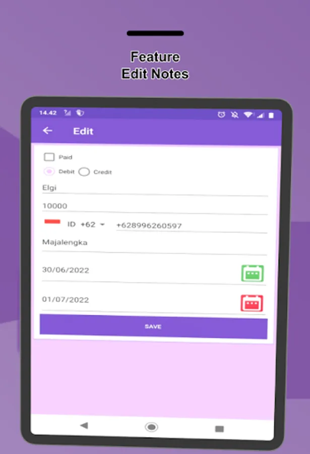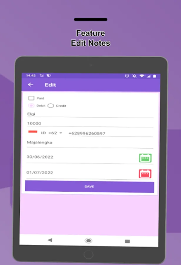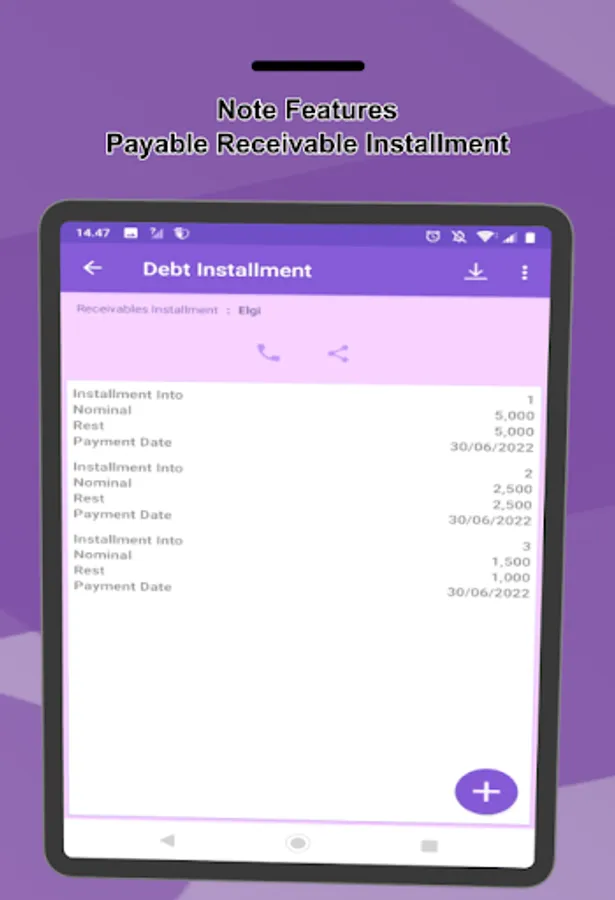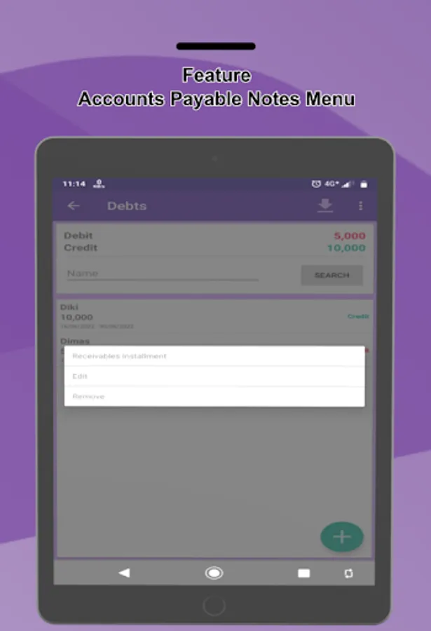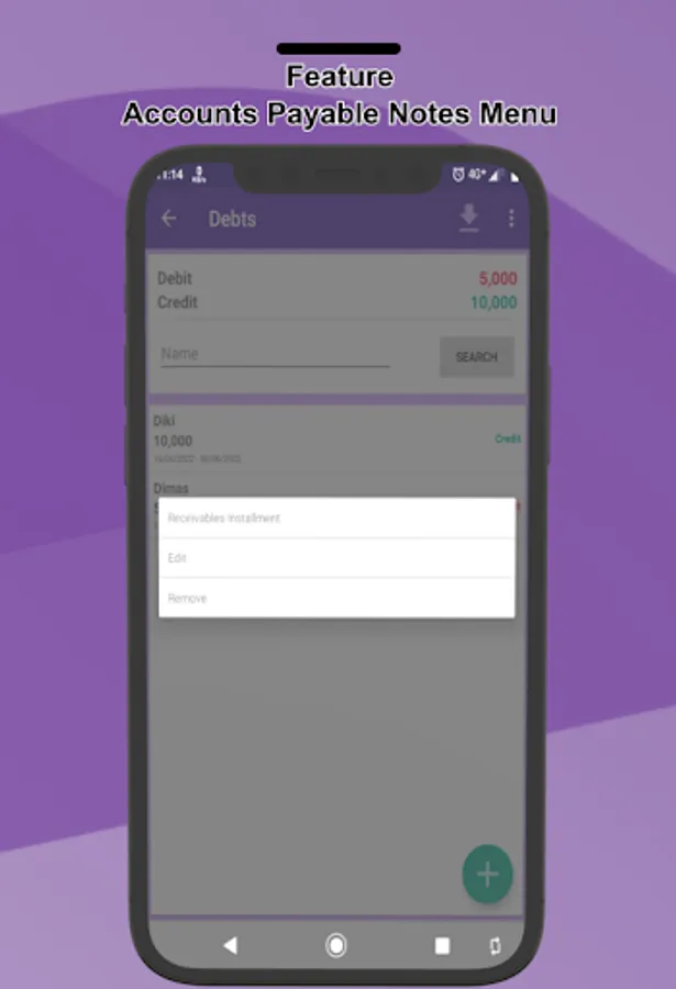 Debt and Credit Notes serves to record our debt to other people and other people's receivables to us so we are easily reminded of Debt and our receivables along with the installments and recap let alone already have alarm notification is very helpful once insyaAlloh