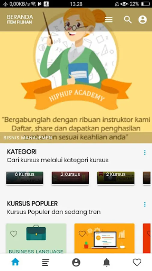 HipHup is a platform of marketplace collaboration between participants and mentors (experts) to develop new skills with courses that have been adopted using technology support.
