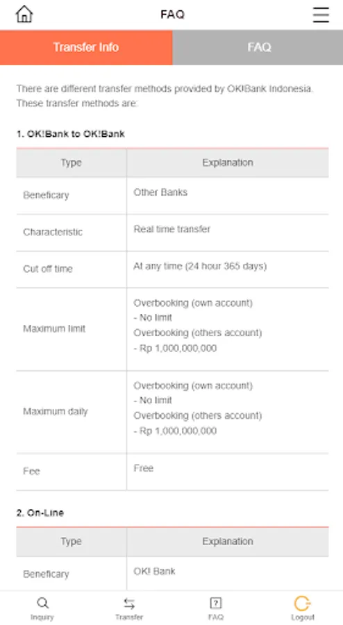 - Domestic transfers through LLG, Online Transfer, and BI Fast.