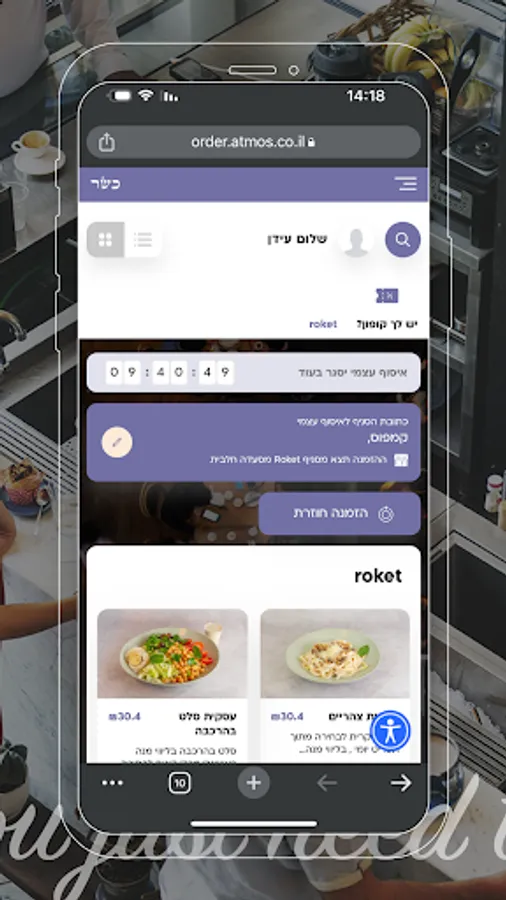 An advanced ordering application for Leumi Campus employees, Leumi employees will be able to enjoy food orders from the points of sale located on the Leumi Campus