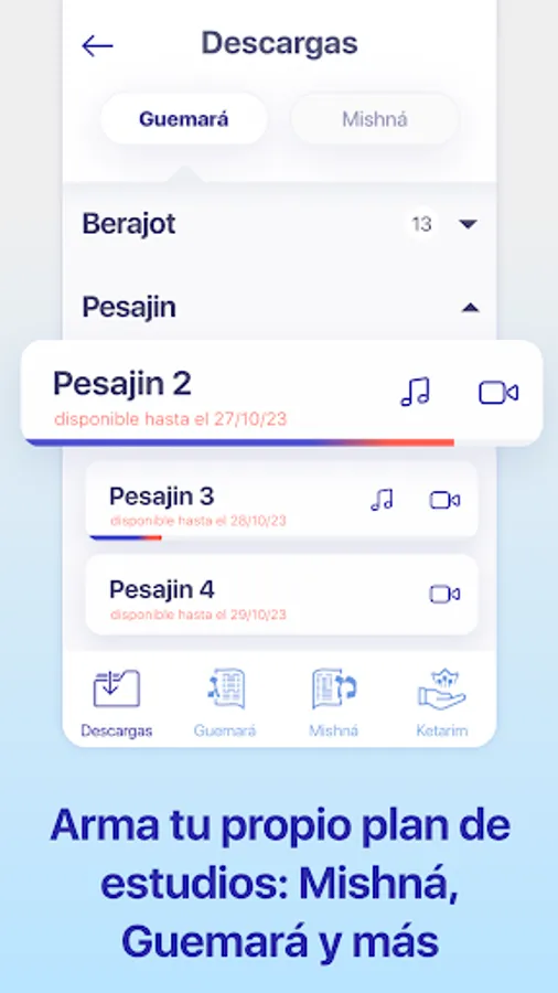 Access more than 3000 classes in video or audio. Join the global Daf Yomi program and study one page a day, or choose your topics of interest and enjoy the Talmud at your own pace.