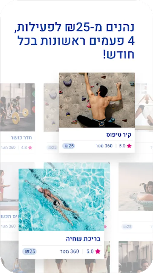 We invite you to 2 free trial lessons, and 4 more activities each month for 25 NIS per activity in the most worthwhile places.