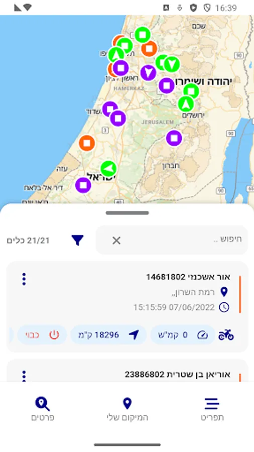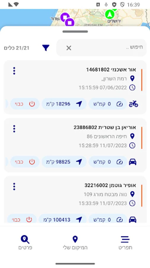 Each vehicle on the list appears with all the information collected on it in real time, among others: speed, km, engine status, battery status and more.