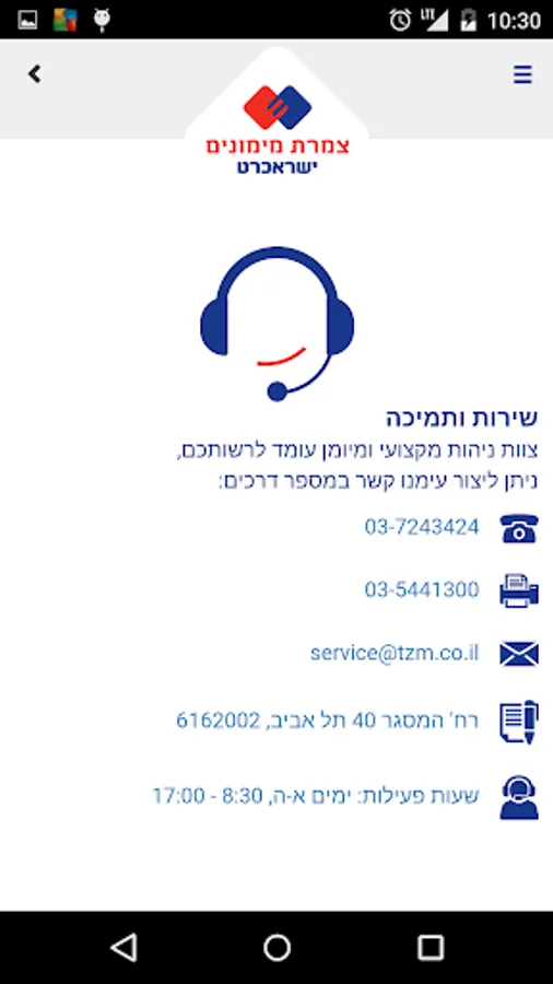 Tzameret Mimunim proud to introduce advanced service that allows to get the information you need to securely, Using your smartphone device, anywhere, at your convenience.