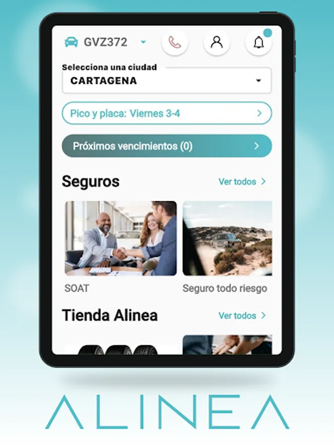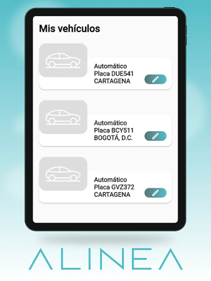 Alinea is a virtual assistant that accompanies you and facilitates the management of your vehicle; notifies you of expirations; the peak and plate of your city, organizes your vehicle expenses, allows you to quote, compare, buy and schedule appointments for your vehicles and the most important auto parts, all in one place. Wherever you go Alinea accompanies you!