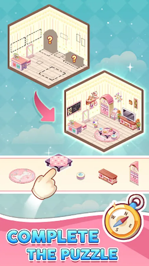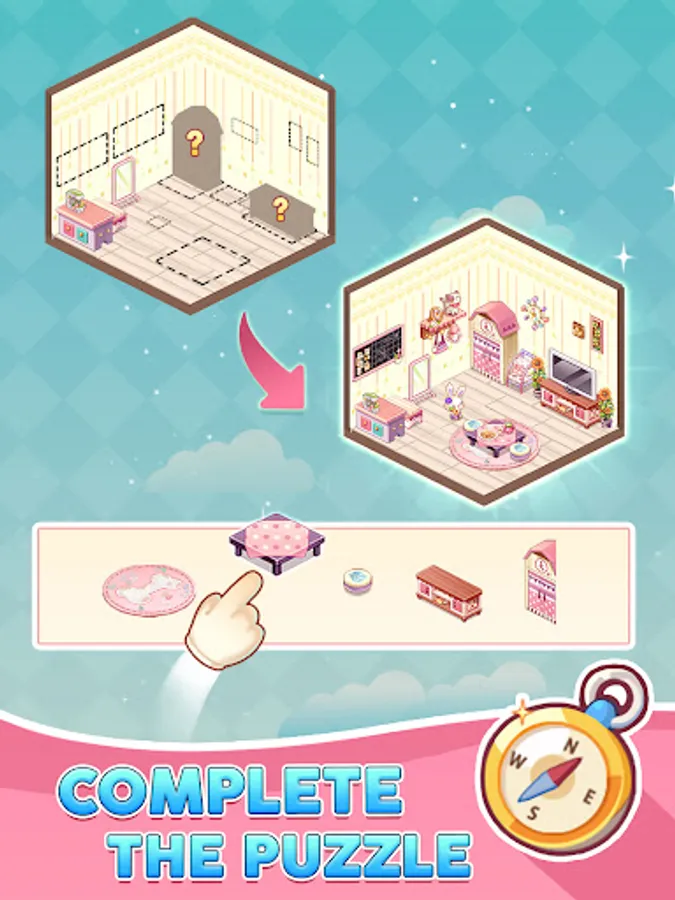 • Use your cute finger and move the eye-catching decor to the right place in a room.