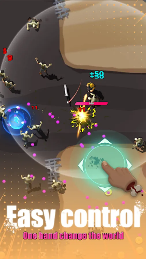 1. Use only one hand to avoid and destroy the zombie horde coming towards you from all sides.