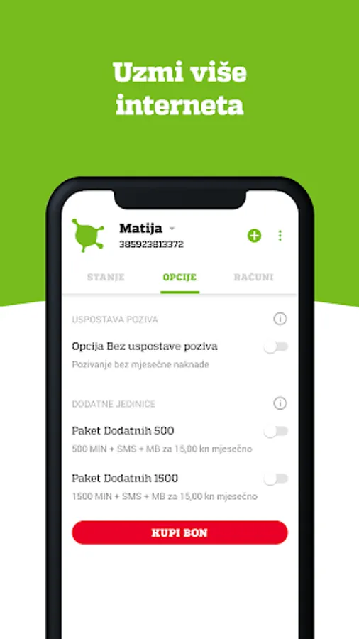 • The app stores access information for accessing the service via a WiFi network (“Zapamti me”)