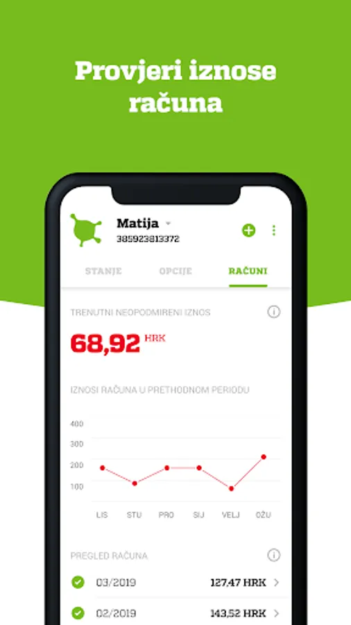 • Overview of the last 12 bills and access to bills in PDF format, including payment data as well as 2D bar code.