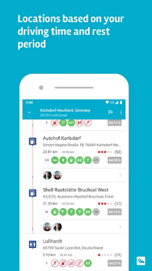 Do you want to know which parking is within your allowable driving time? We got you covered. Simply enter the number of minutes you are allowed to drive plus your destination. We combine your location with the daily driving period and provide you with parking options, rest areas and truck stops.