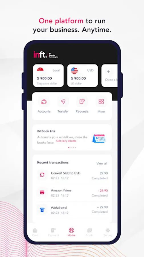 INFT is Asia’s first community-driven digital business account for startups and SMEs. In addition, it is truly user-friendly. You can get a business cashline of up to $150,000 as fast as 3 hours from approval. A really versatile Visa debit card with incredible benefits awaits you. And you can make international money transfers that cost you much less than banks. A suite of uniquely exceptional business experiences. At INFT, we enable digital entrepreneurship.