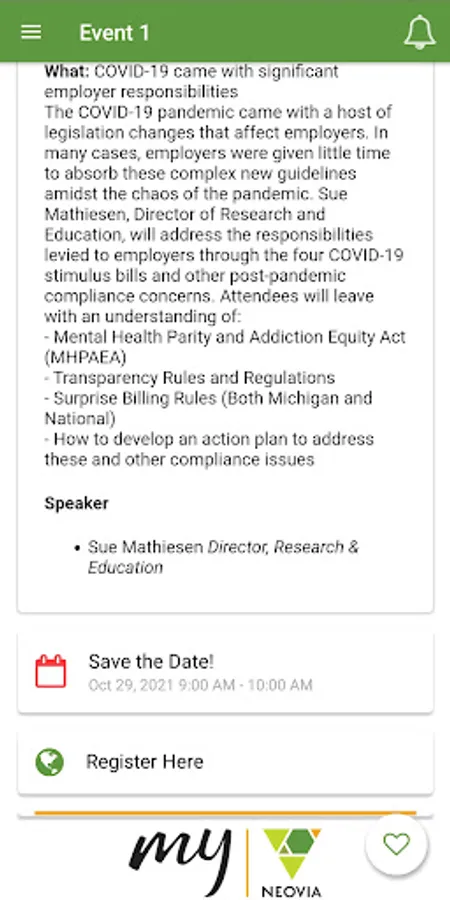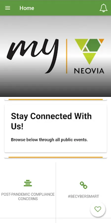 Welcome to the My Neovia app! Stay connected with all the events we have to offer to make our community stronger. We rely on technology that works best to improve the delivery of our communication. Want to learn more? Download the app today!
