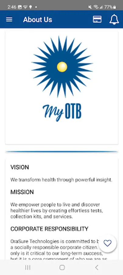 The MyOTB app provides everything you need to know about Orasure Technologies Inc! Simple navigation to resources gives you access to information you need, when you need it. The MyOTB serves as a wrapper around the services that Orasure has to offer, housed in one location and easy to access. Want to learn more? Download the app today!