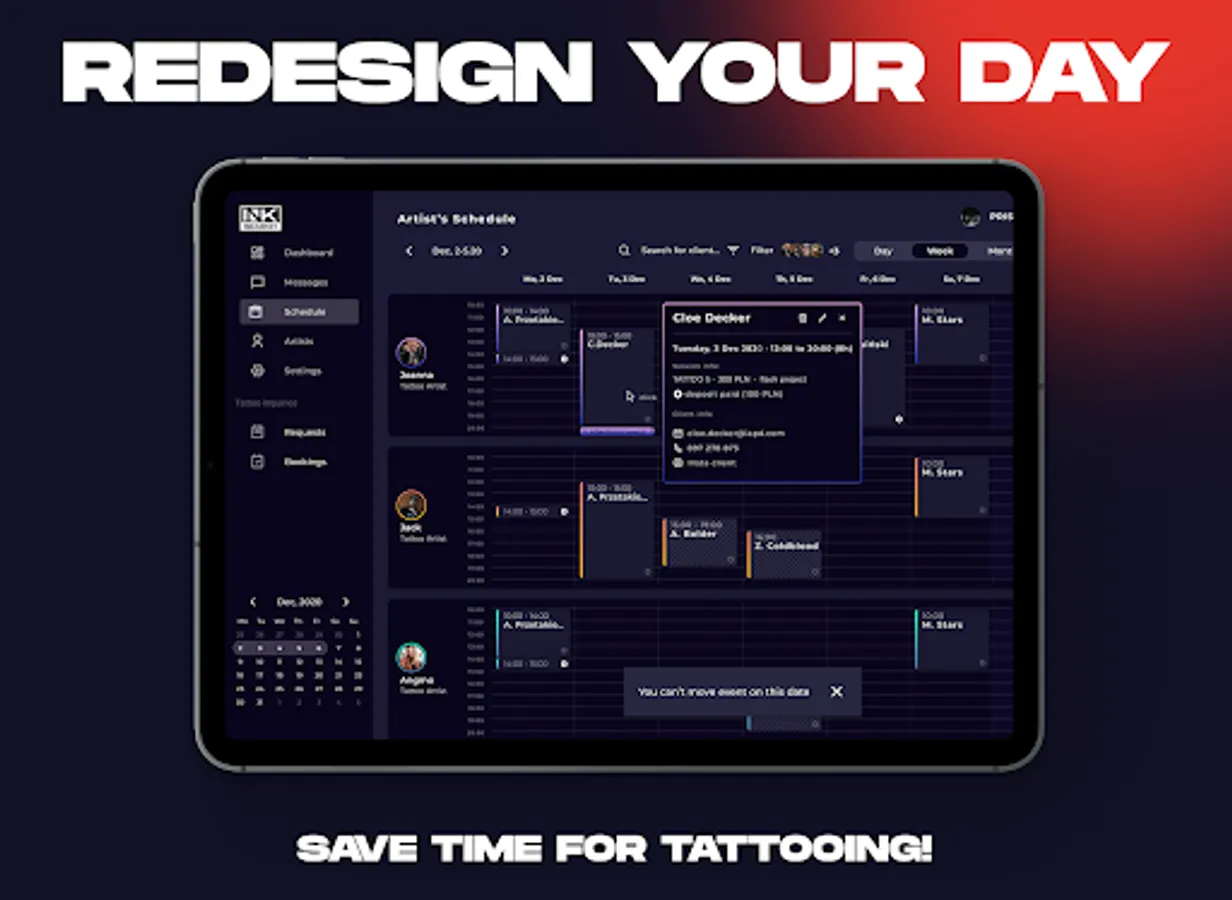Based on many years of experience of tattooists, managers and owners of tattoo studios, INKsearch.co has designed a tool dedicated to the industry that offers much more than an ordinary calendar! We support your business by solving the most common problems faced by the tattoo market.