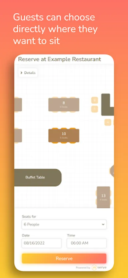 There are many reservation systems & tools out there, but none of them offer your guests the ability to reserve exactly their desired seat. And it's not just your guests who benefit. Among other things, it allows you to better monitor your place, as well as automatically improve the utilization of your tables.
