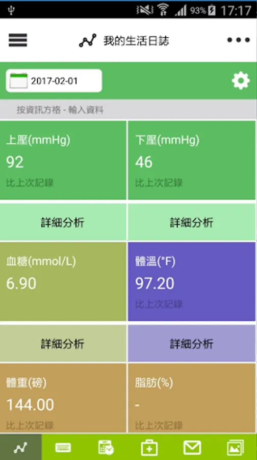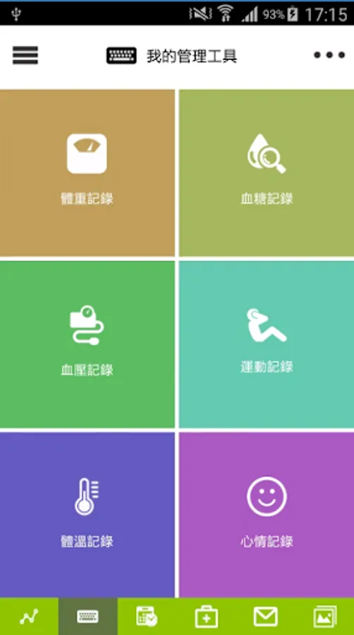 我的管理工具:記錄健康數據,包括體重、血壓、血糖、運動、體温、心情。