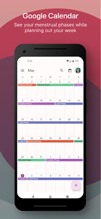 GOOGLE CALENDAR - Sync with your Google Calendar to see your menstrual phases while you’re planning out your week.