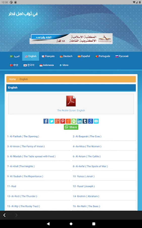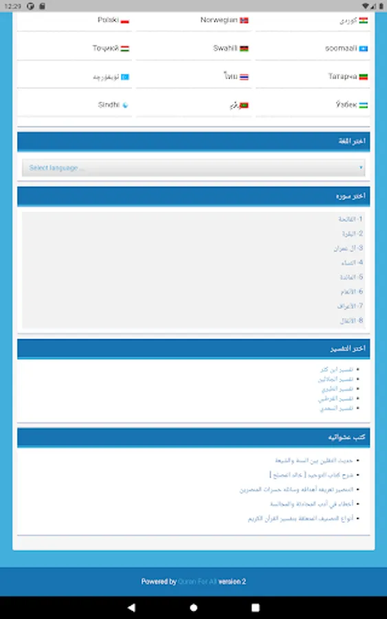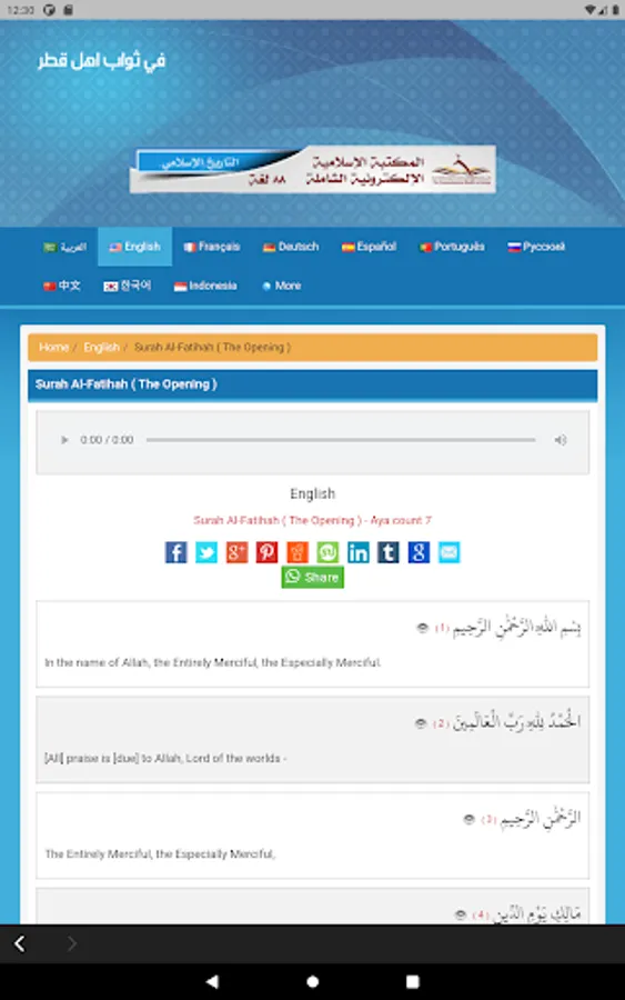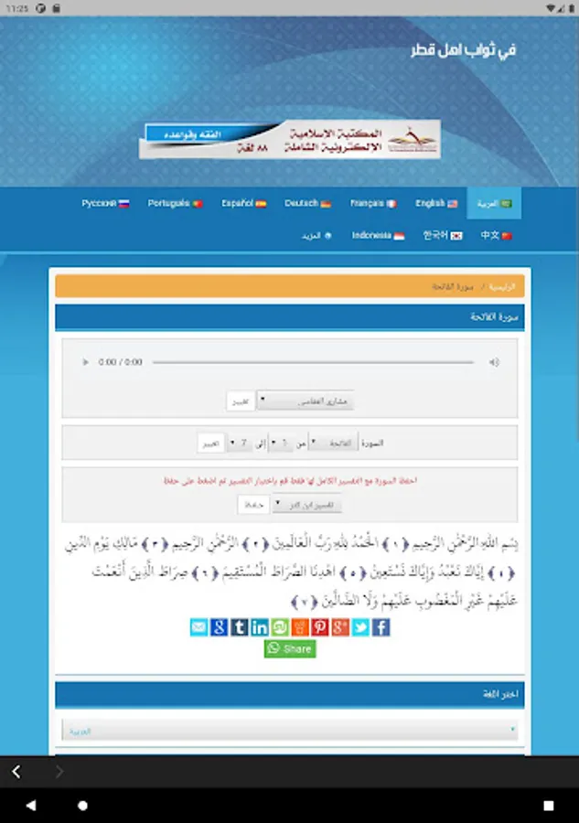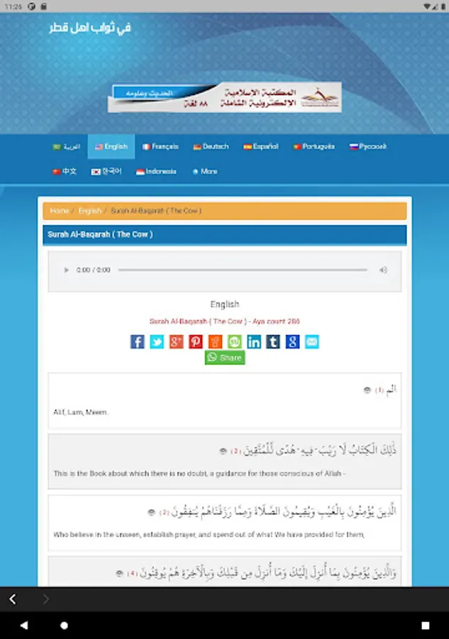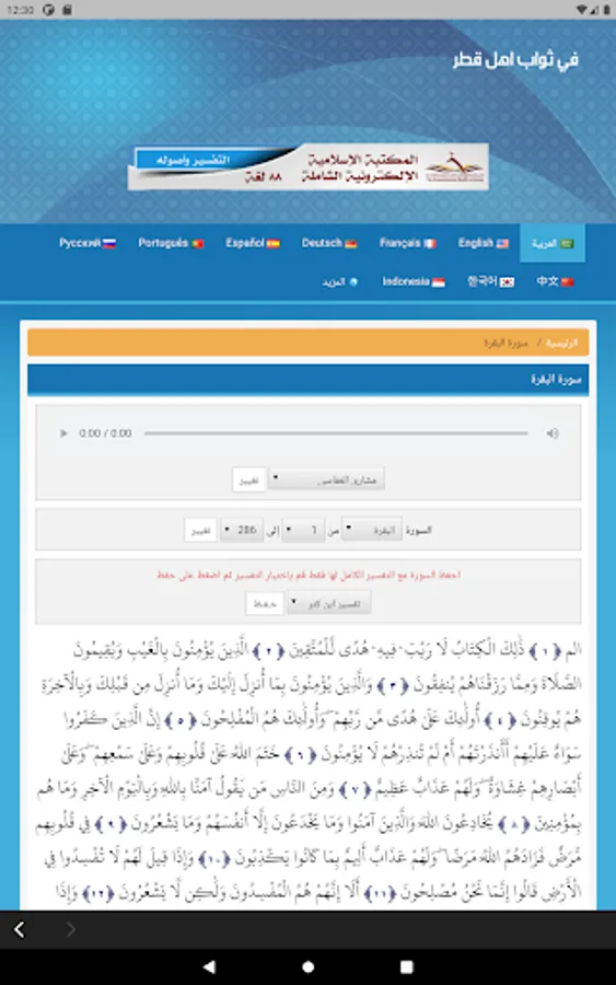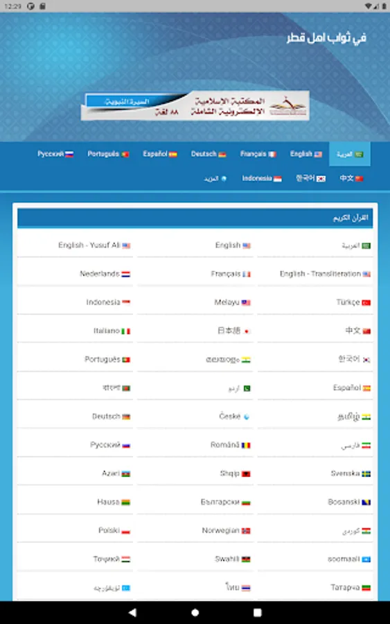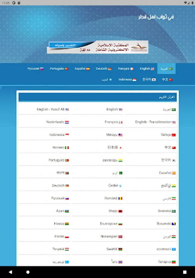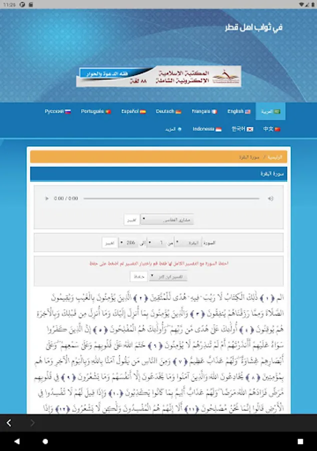 An application to listen to the verses of the Noble Qur’an from the great reciters in all languages of the world