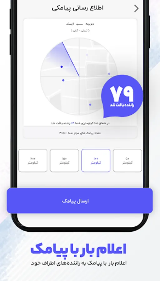 - رانندگان در صورت دلخواه میتوانند برای بار شما درخواست حمل ارسال کنند ، در این مواقع اطلاعات راننده برای شما پیامک میشود و میتوانید با راننده بار تماس بگیرید
