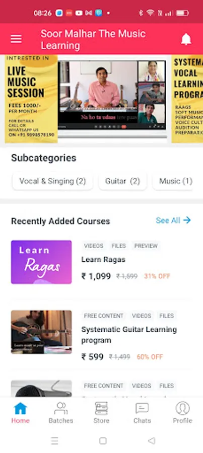 Soor Malhar the Music Learning is a platform where you can learn music at your place, at your convenience and at your pace. It provides comprehensive courses of learning Vocal (Singing), Piano Keyboard, Guitar, Western music and more. Soor Malhar provides systematic and step by step music learning so that any beginner can start learning music. The syllabus of courses is designed in such a manner that any beginner can start from 0 level. It includes courses of Indian music, Classical music, Soft music, Voice Culturing, Leads, Chords, Strumming patterns, arpeggios, Theory and more. Soor Malhar Music Learning provides self-paced, recorded syllabus and also Live interactive music sessions.