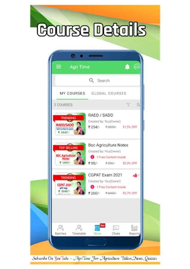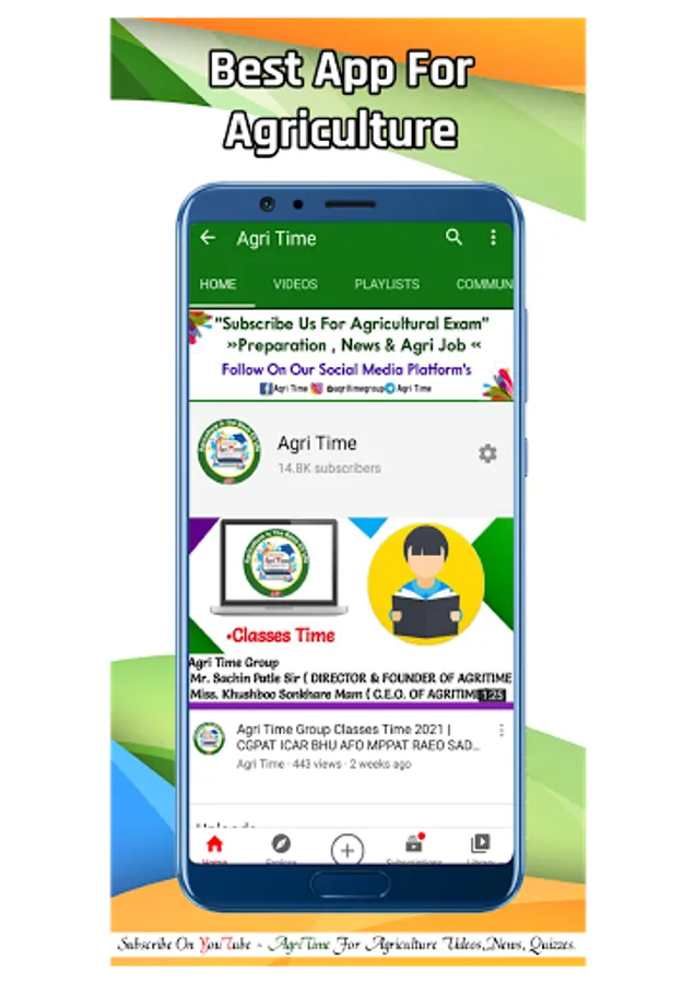 This platform offers video lectures, Notes, and a variety of test series. All the students of class 11th, 12th, CGPAT, MPPAT, JNKV - CET, IGKV-CET, BHU, ICAR UG, ICAR-JRF, SRF, and B.Sc(Agriculture) can join AgriTime. This platform also provides lectures for government job-oriented exams in the field of agriculture like RAEO, RHEO, AFO ( Agriculture Current Affairs ) NSCL, IFFCO AGT, and Agriculture teacher job, etc.