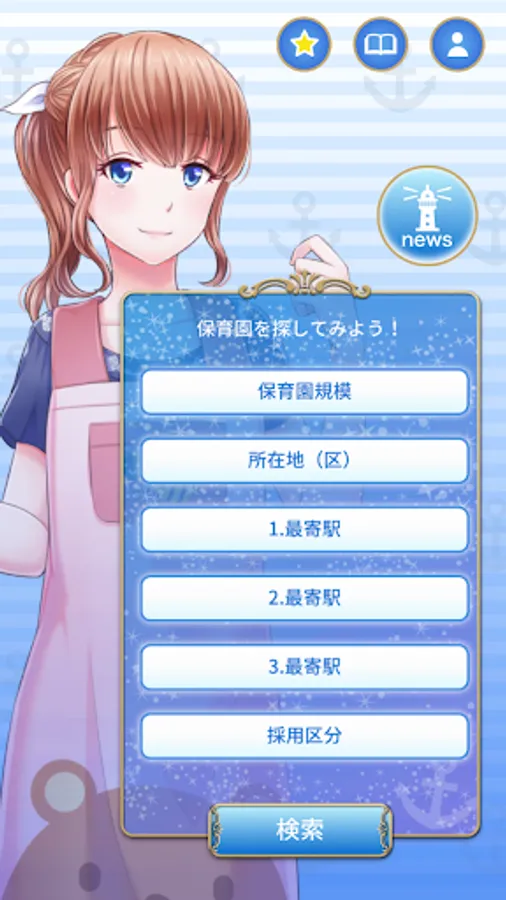 Along with the nursery teacher character, to search for Jobs in nursery school in the sense such as games, can inquiry is the feature of this app.