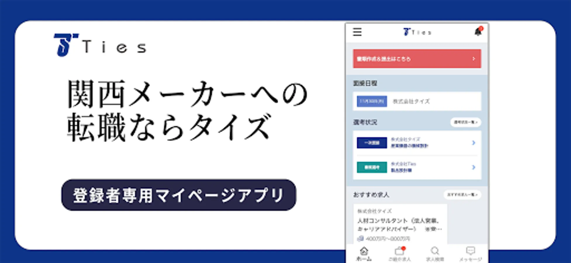 This is an app for those who use the job change support service of "Taiz Co., Ltd.", a job change agent specializing in Kansai manufacturers.