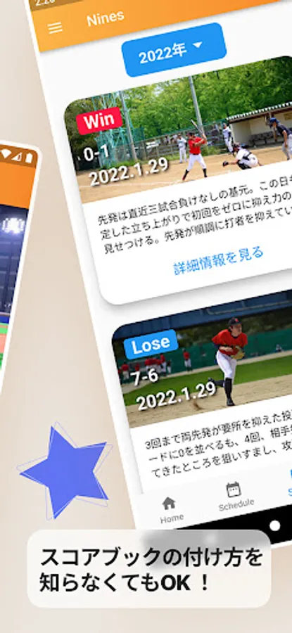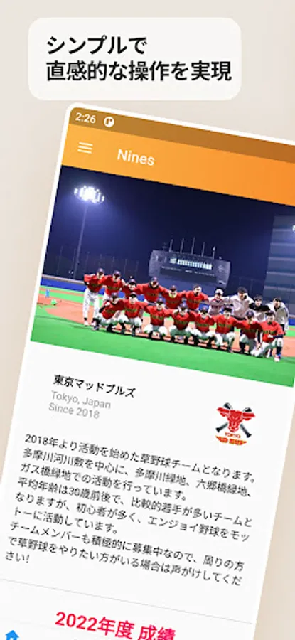 The grass baseball support app "Nines" was created to make your grass baseball activities as enjoyable and convenient as possible.