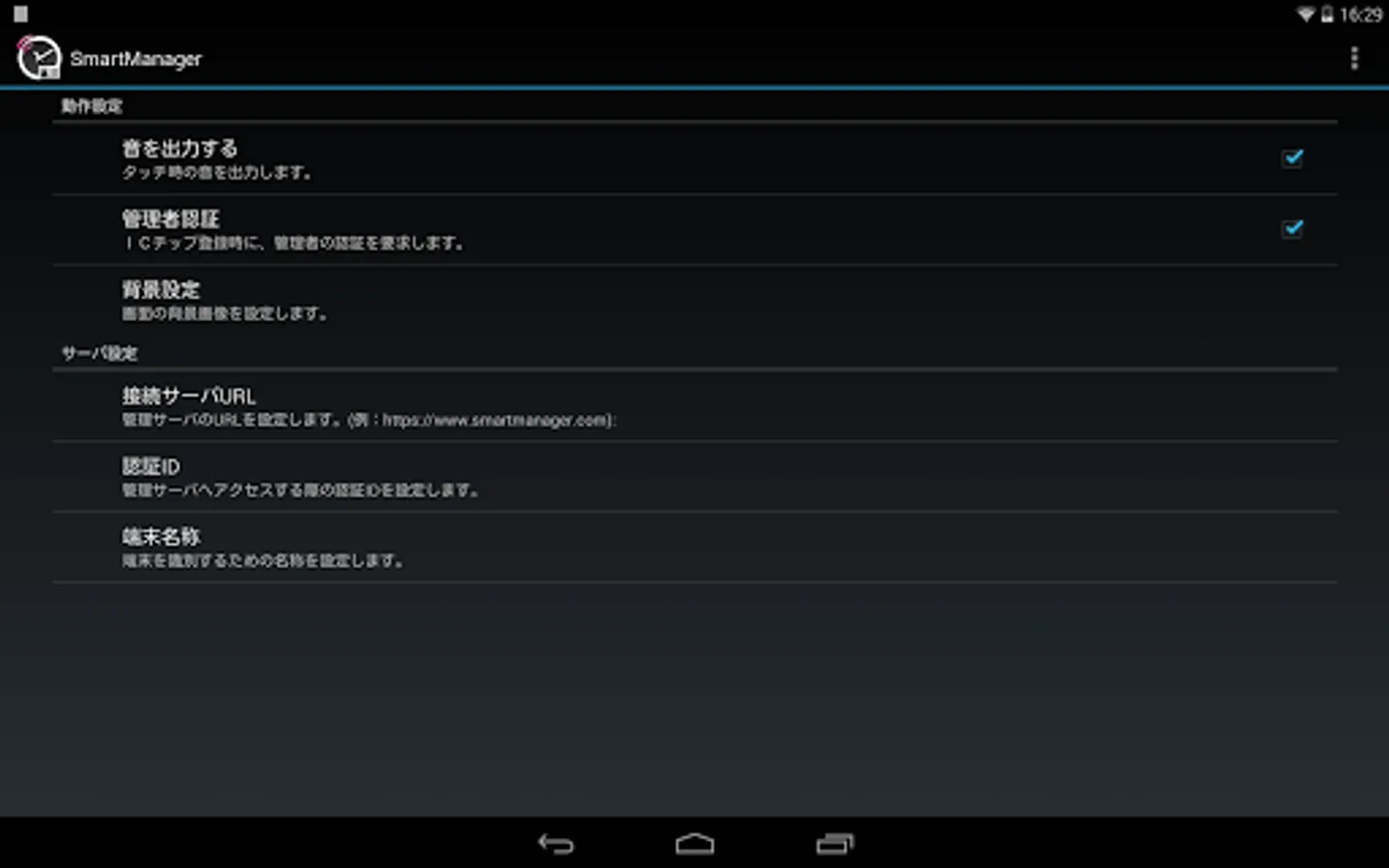 It is a time recorder application of time management system "SmartManager" provided by Japan Access Corporation.