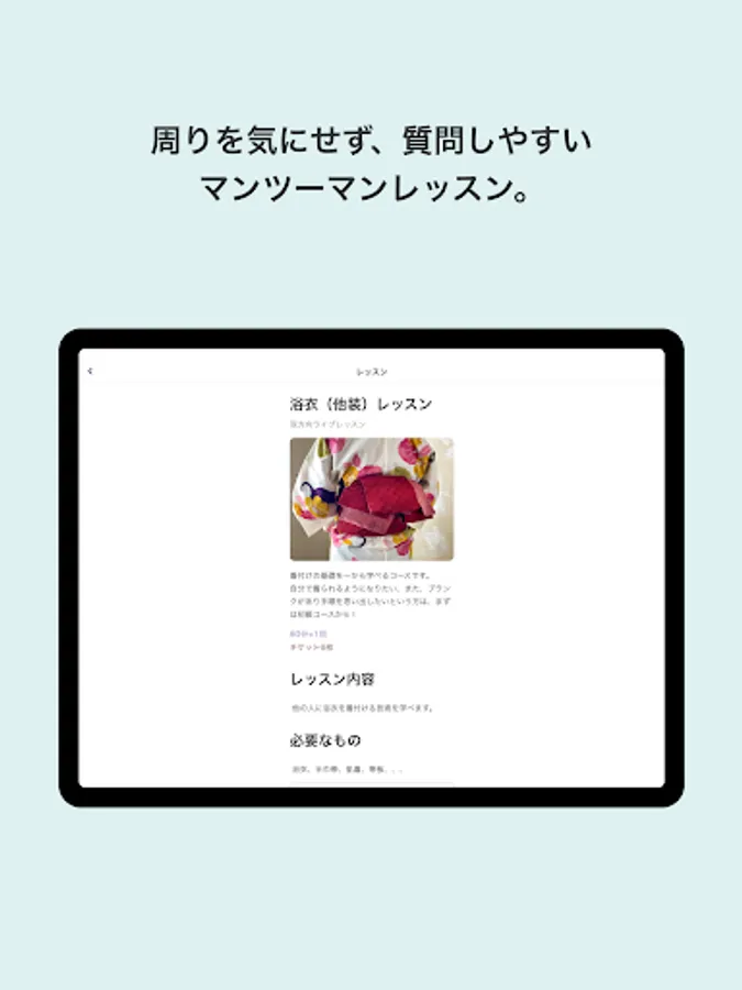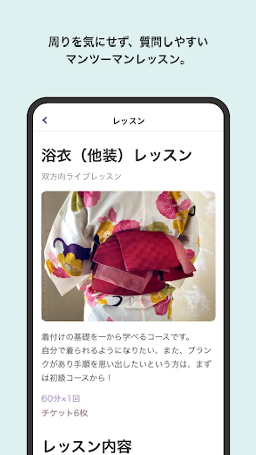 The basics are solid, but we want you to feel the “fun of wearing a kimono” by arranging the complicated parts as simply as possible. It is a curriculum that was born from such a thought.