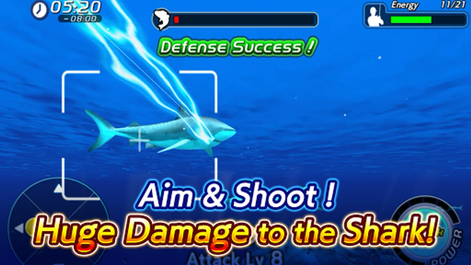 Beware of the wild shark attack! Shoot the attack button accurately!