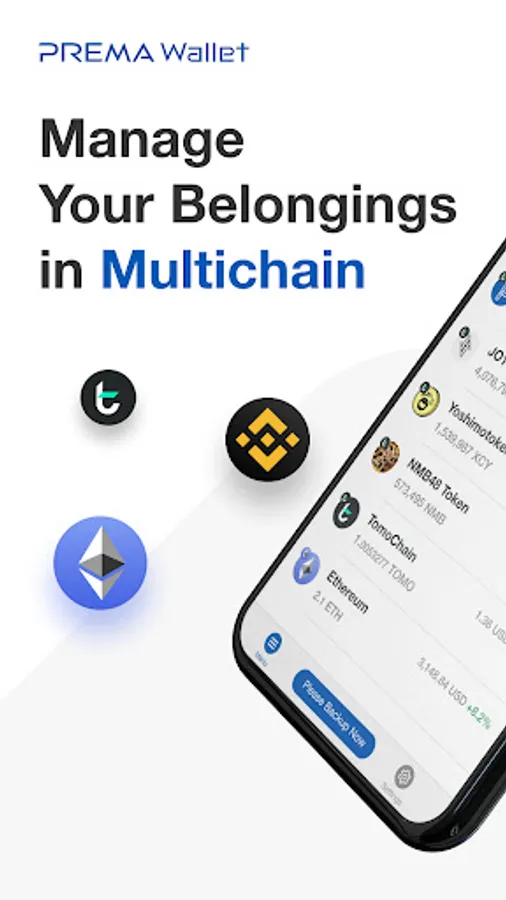PREMA Wallet: MULTICHAIN WALLET CONNECT FOR ETH, BNB, FTM, MATIC, AVAX, ONE, HECO, TOMO