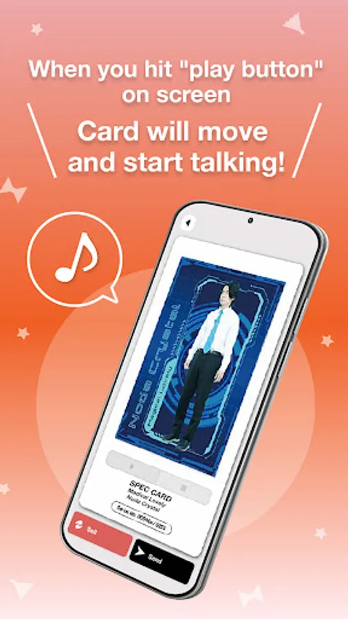 ● Press the play button on the screen and the card will move and start talking! You can enjoy the newly shot videos of the comedians that you can only see here.