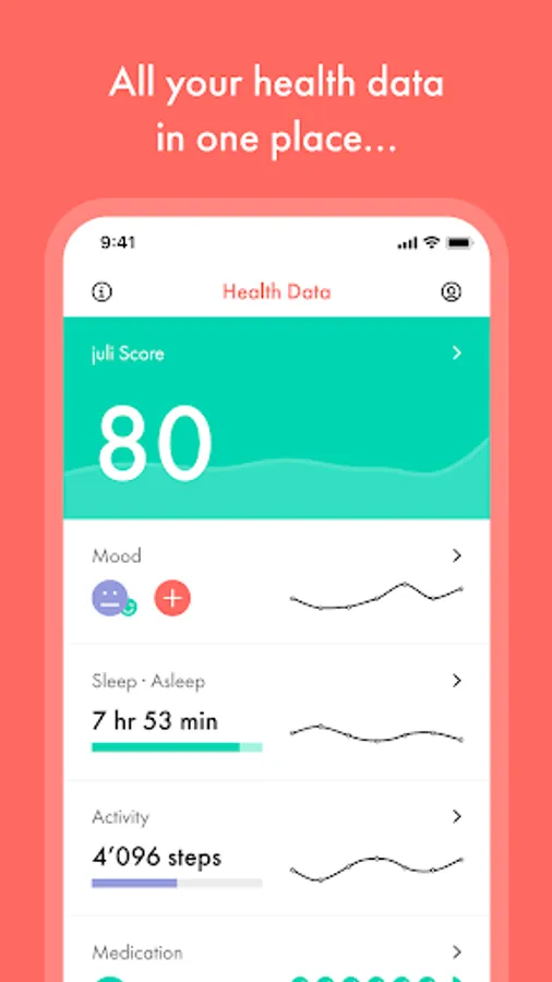 juli can help you to take control of your condition: all your health data together to manage your depression, hypertension, asthma, bipolar disorder, chronic pain, migraine or something else.