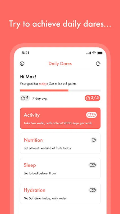 Get so-called Daily Dares are easy targets that help with your overall wellbeing. You can earn coins and badges by achieving them. It is a fun thing and also helps to improve your health.