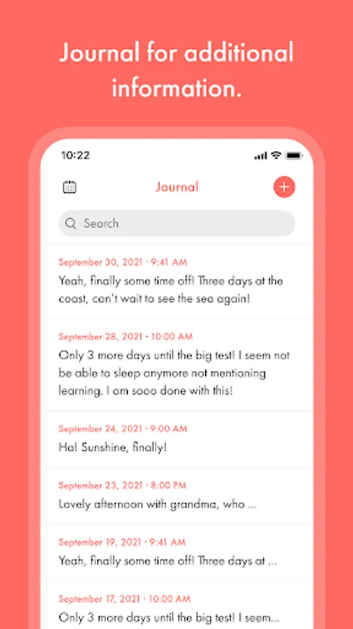 Visualize your situation on a daily basis, see trends and discover correlations between your wellbeing and other factors.