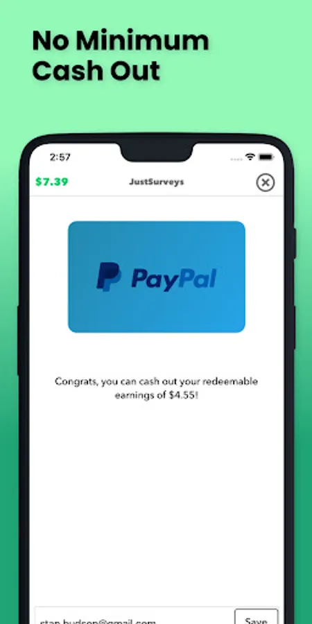 β NO MINIMUM CASHOUT: Get dollars directly into your inbox! cash out your earnings immediately, with the no minimum cashout feature!