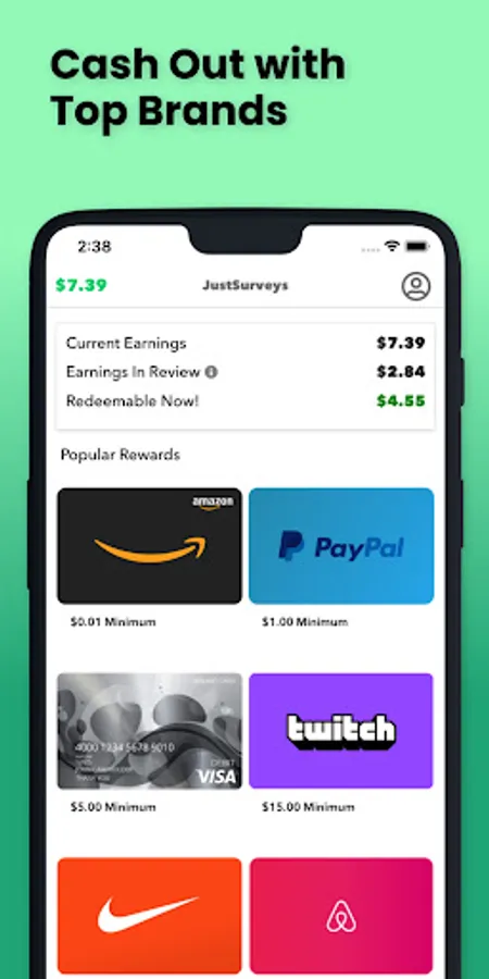 There are no minimum cashout requirements, you can instantly earn Paypal/Visa credit or brand rewards for giving your quick thoughts in a paid survey on the go!