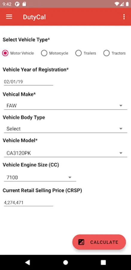 The app uses latest Kenya Revenue Authority (KRA) published motor vehicle valuation template, published on 30th June 2020 and effective from 7th July 2020.